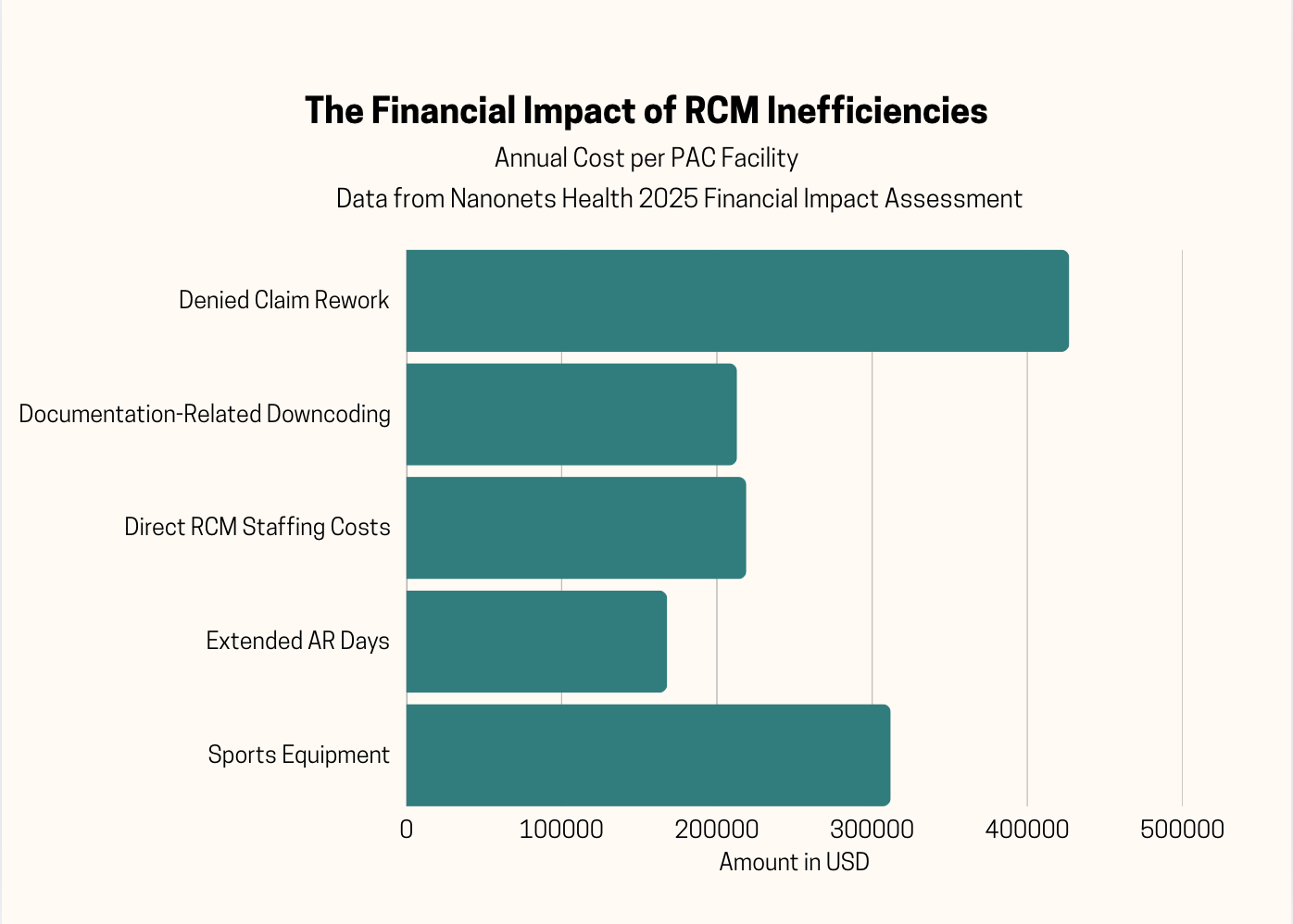 - Claim denial rates are skyrocketing: The average PAC facility now faces a 24% initial denial rate, with each denied claim costing $118 in administrative rework and delaying payment by an average of 47 days.